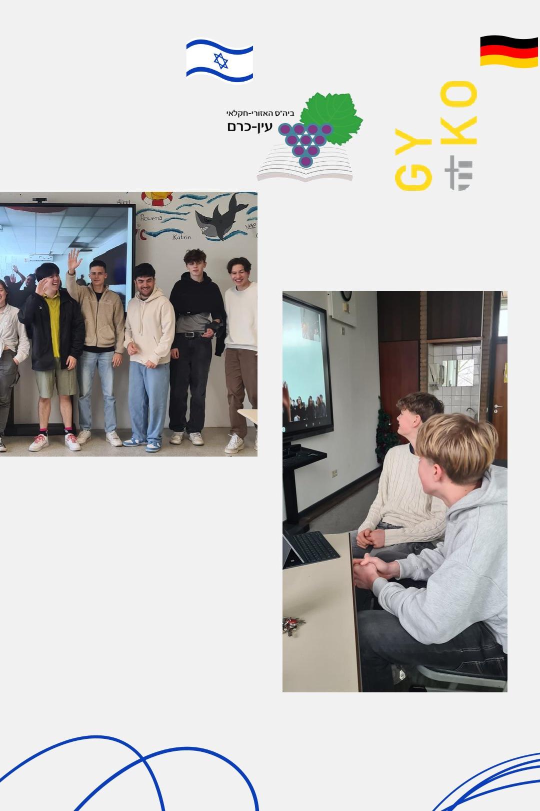 Das Bild auf der Vorderseite zeigt Eindrücke aus dem Gymnasium Korschenbroich, das seit Juni 2023 mit einer Schule in Jerusalem kooperiert.